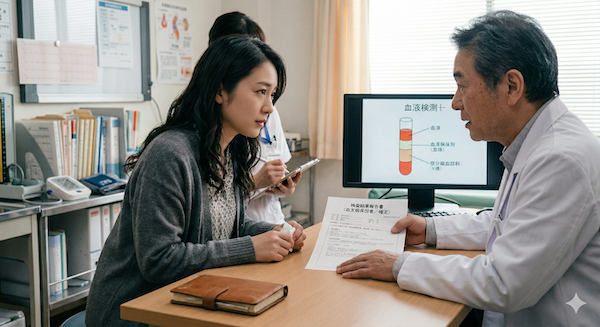 その日のうちに婦人科を受診し、貧血の検査を受け、さらに血液の詳しい検査を勧められた。